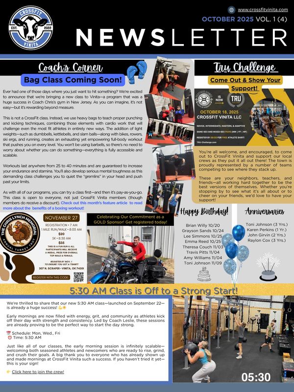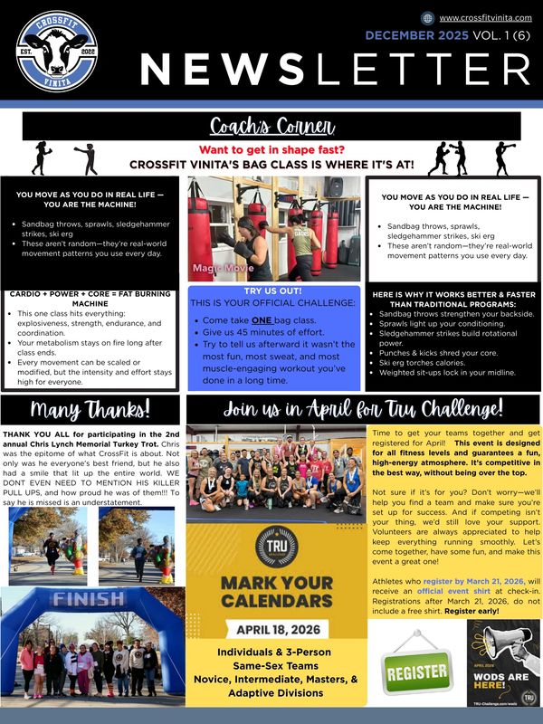 We have another packed newsletter with lots of good stuff. Please take the time to read through it as it highlights some of the things that are important to us like the Chris Lynch Memorial Turkey Trot and the announcement of our upcoming Heavy Punching Bag Conditioning Class.